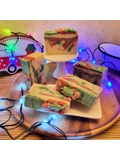 Ingredients: Olive Oil, Coconut Oil, Palm Oil, Sweet Almond Oil, Castor Oil, Sodium Hydroxide, Skin Safe Fragrance and Skin Safe Colorants. May contain Eco-Friendly, Biodegradable glitter.